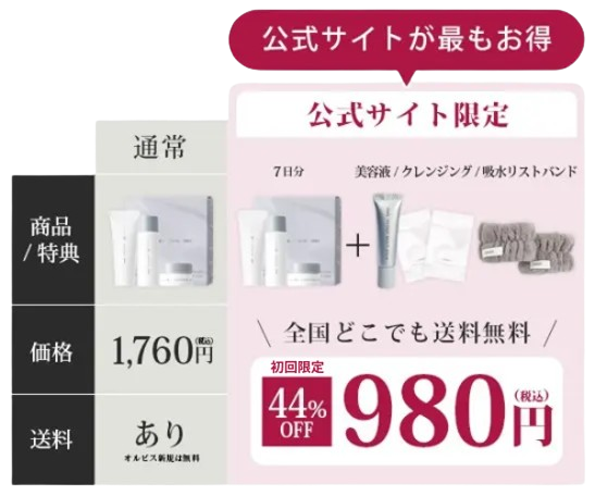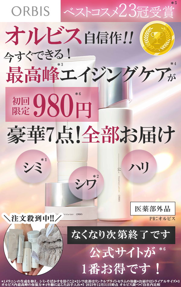 *1オルビス内最高峰の保湿力*2年齢に応じたお手入れ*3初回限定